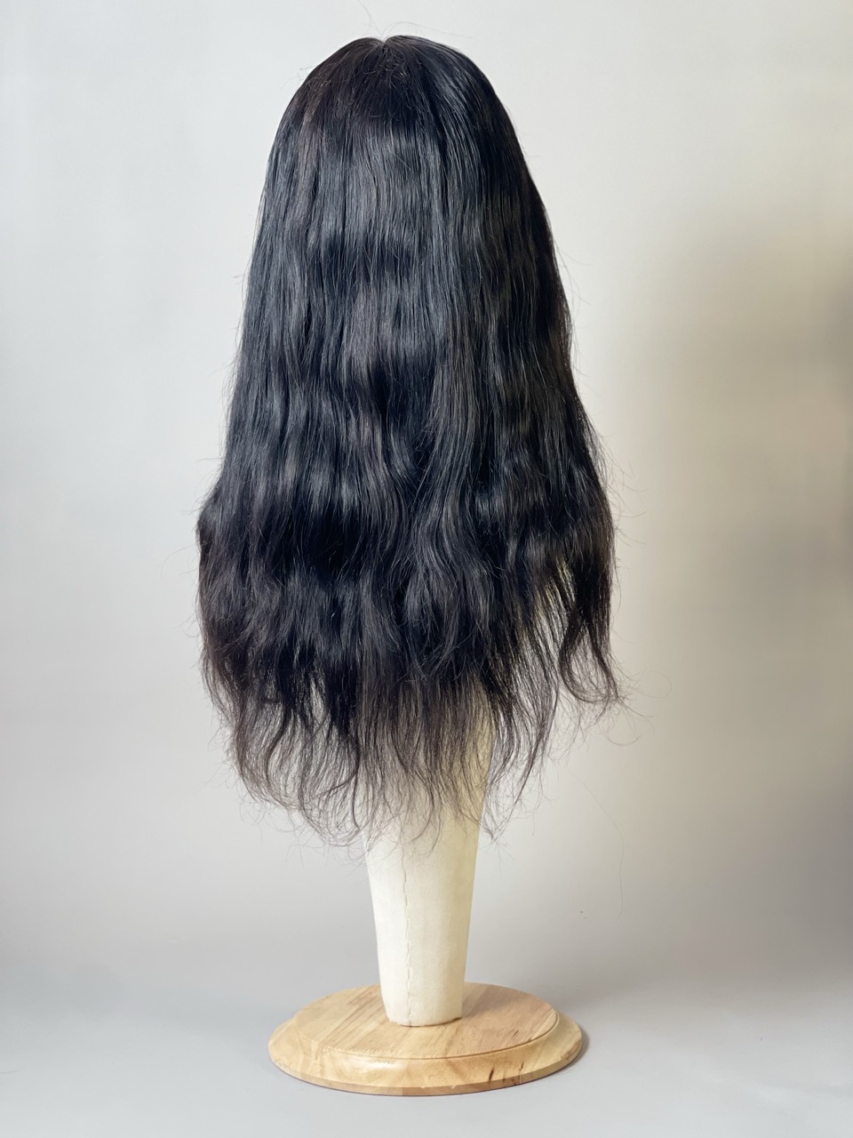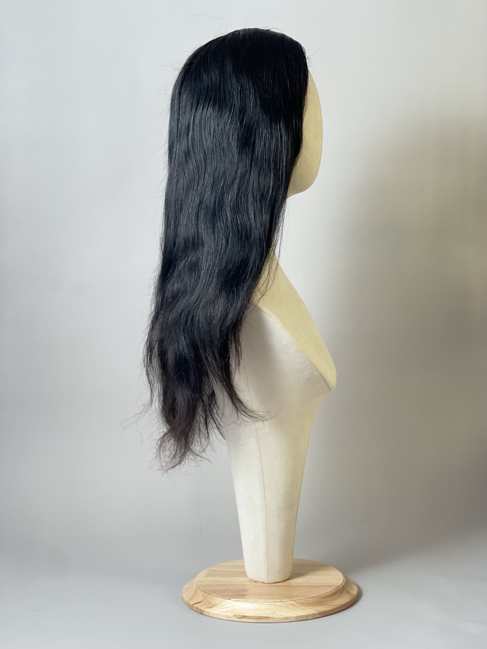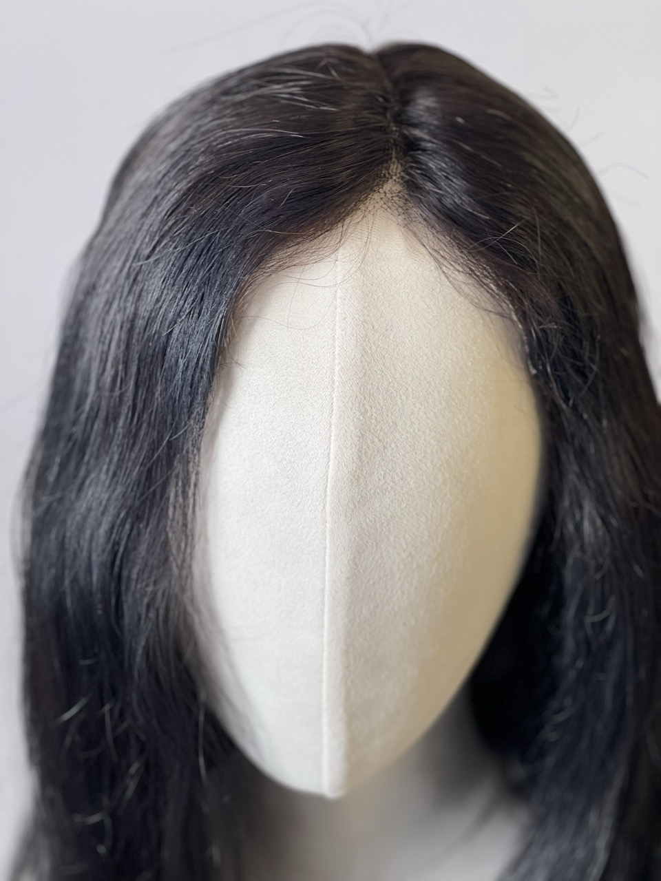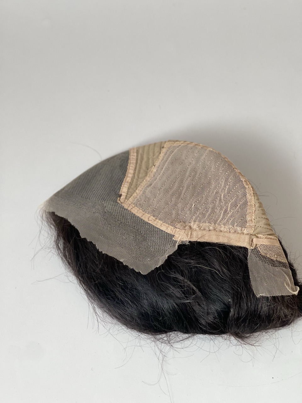 Cap design: Tulle sur la partie frontale implantée à la main en double noeud et tresses cousues à l’arrière.