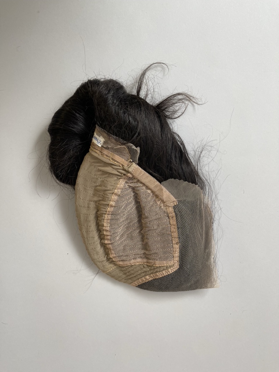 Cap design: Tulle sur la partie frontale implantée à la main en double noeud et tresses cousues à l’arrière.