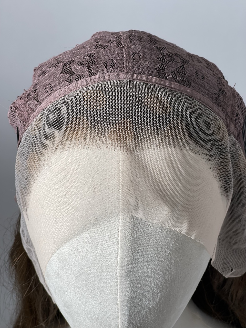 Lace frontale implantée à la main et tresses cousues à l’arrière.
