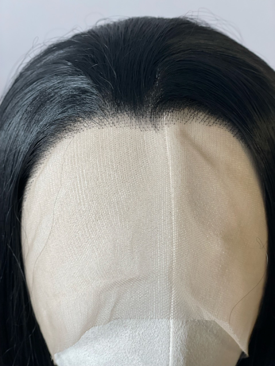 Lace frontale implantée à la main et tresses cousues à l’arrière.