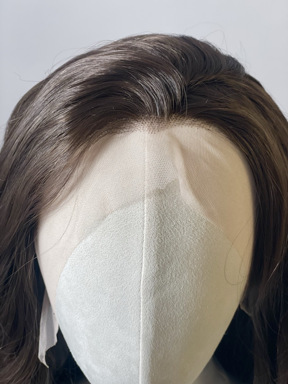 Lace frontale implantée à la main et tresses cousues à l’arrière.