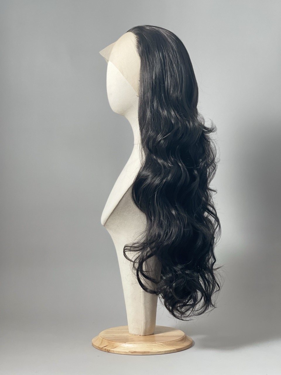 Lace frontale implantée à la main et tresses cousues à l’arrière.