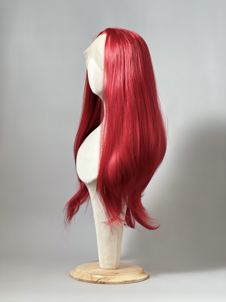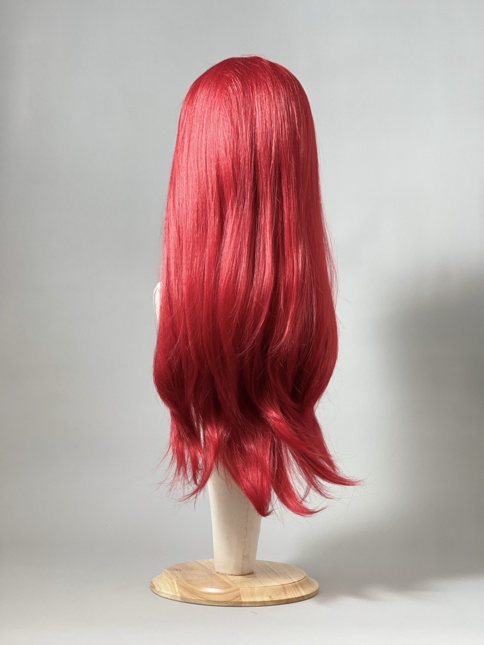 Perruque rouge profond mi longue, dégradée effilée dans les longueurs.