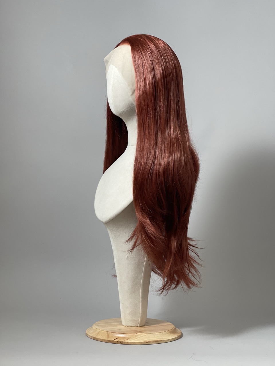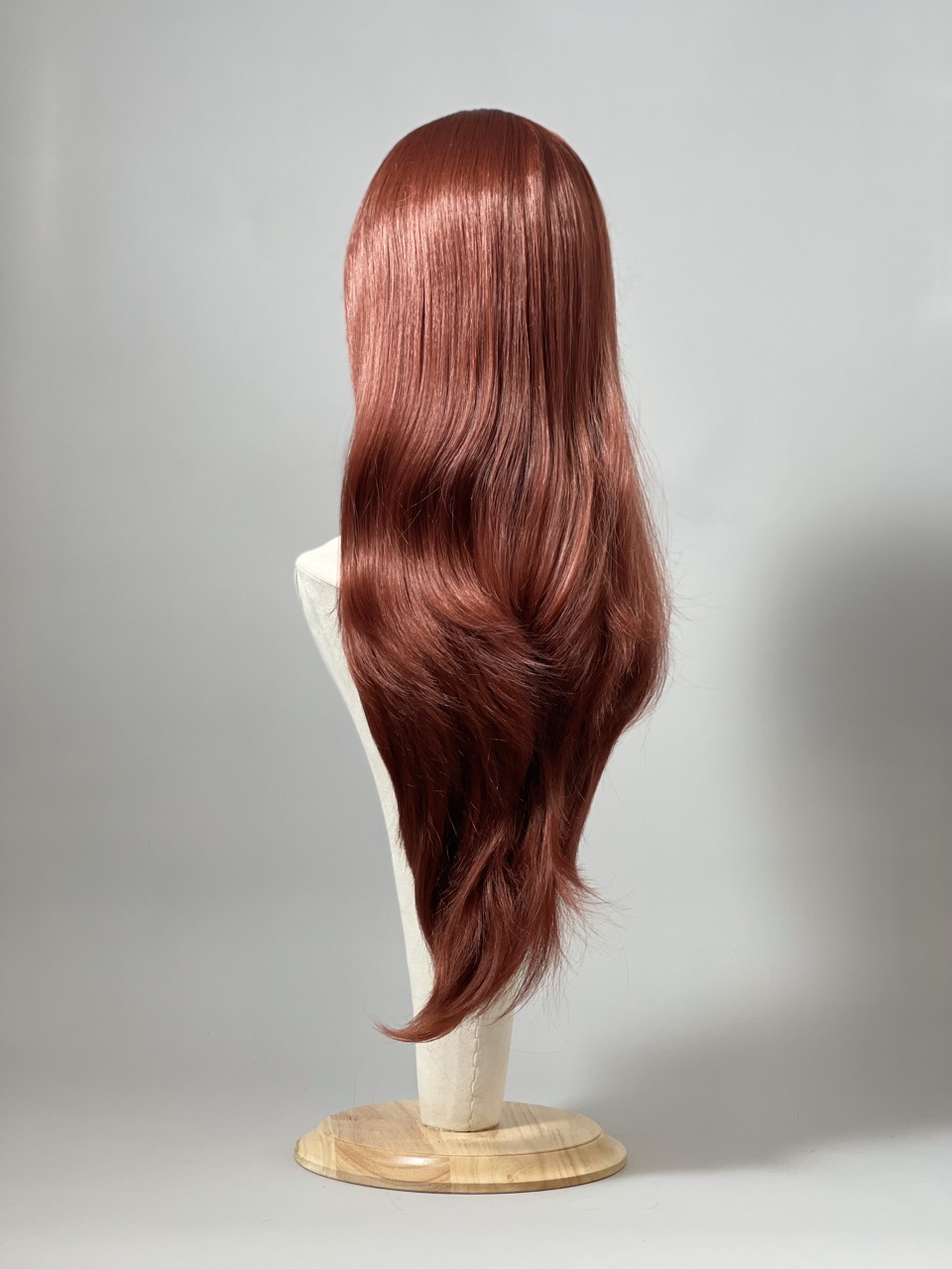 Perruque marron roux long, dégradé et effilé dans les longueurs.