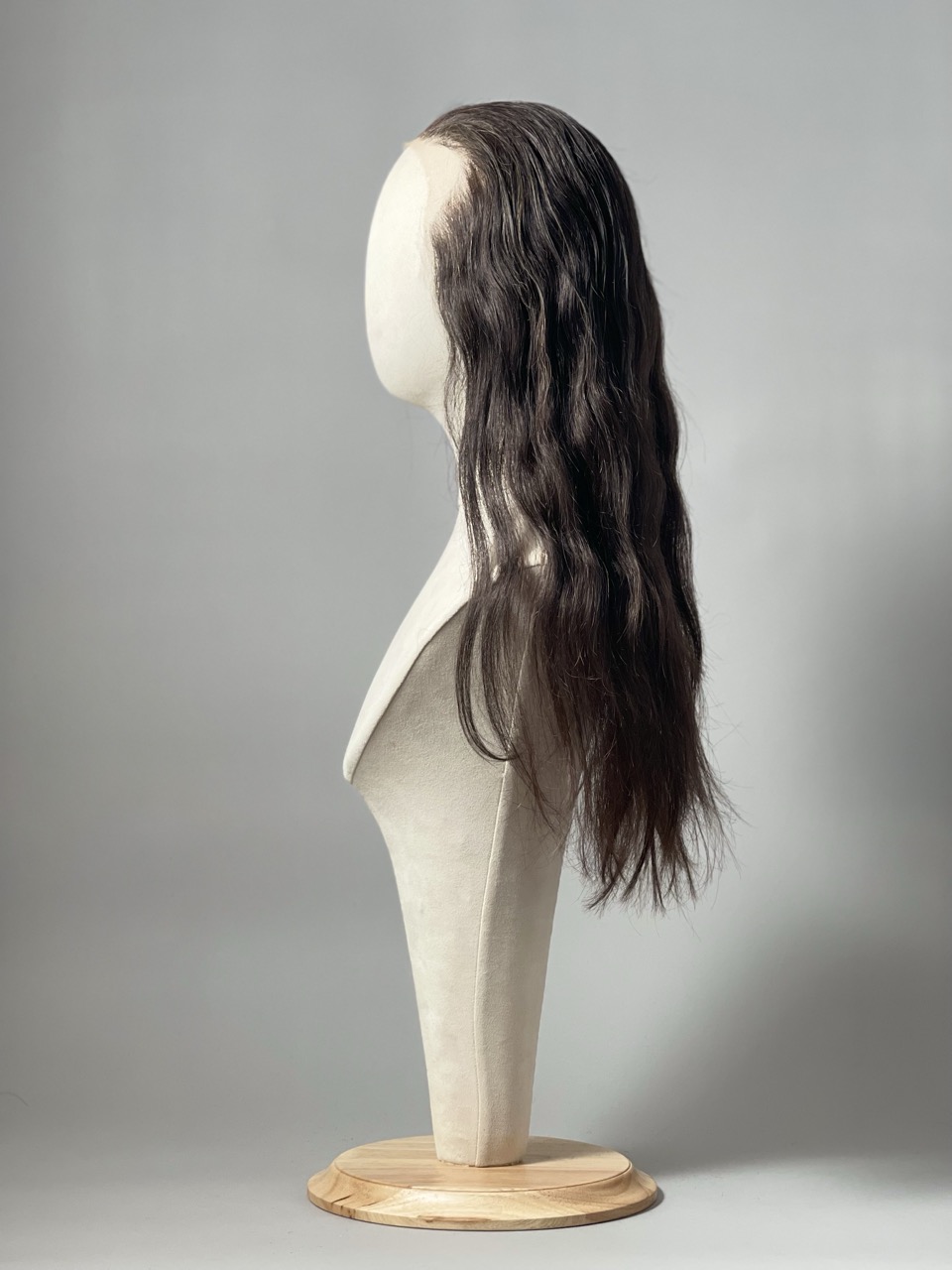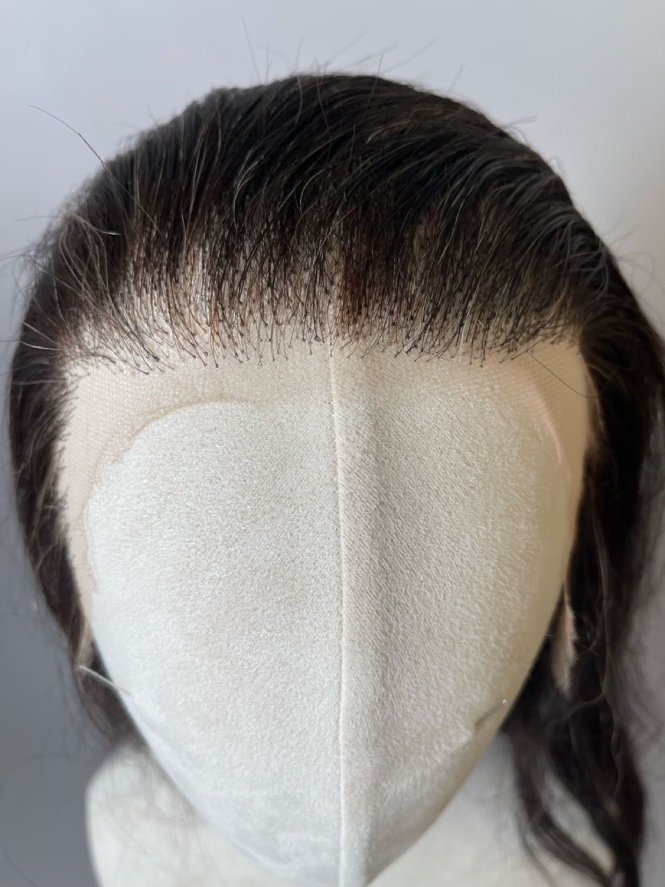Cap design: Tulle fin théâtre sur la partie frontale implantée à la main en simple noeud et tresses cousues à l’arrière. Le bonnet est élastique et ajustable en bas de nuque. Profondeur d implantation sur le front 7 CM