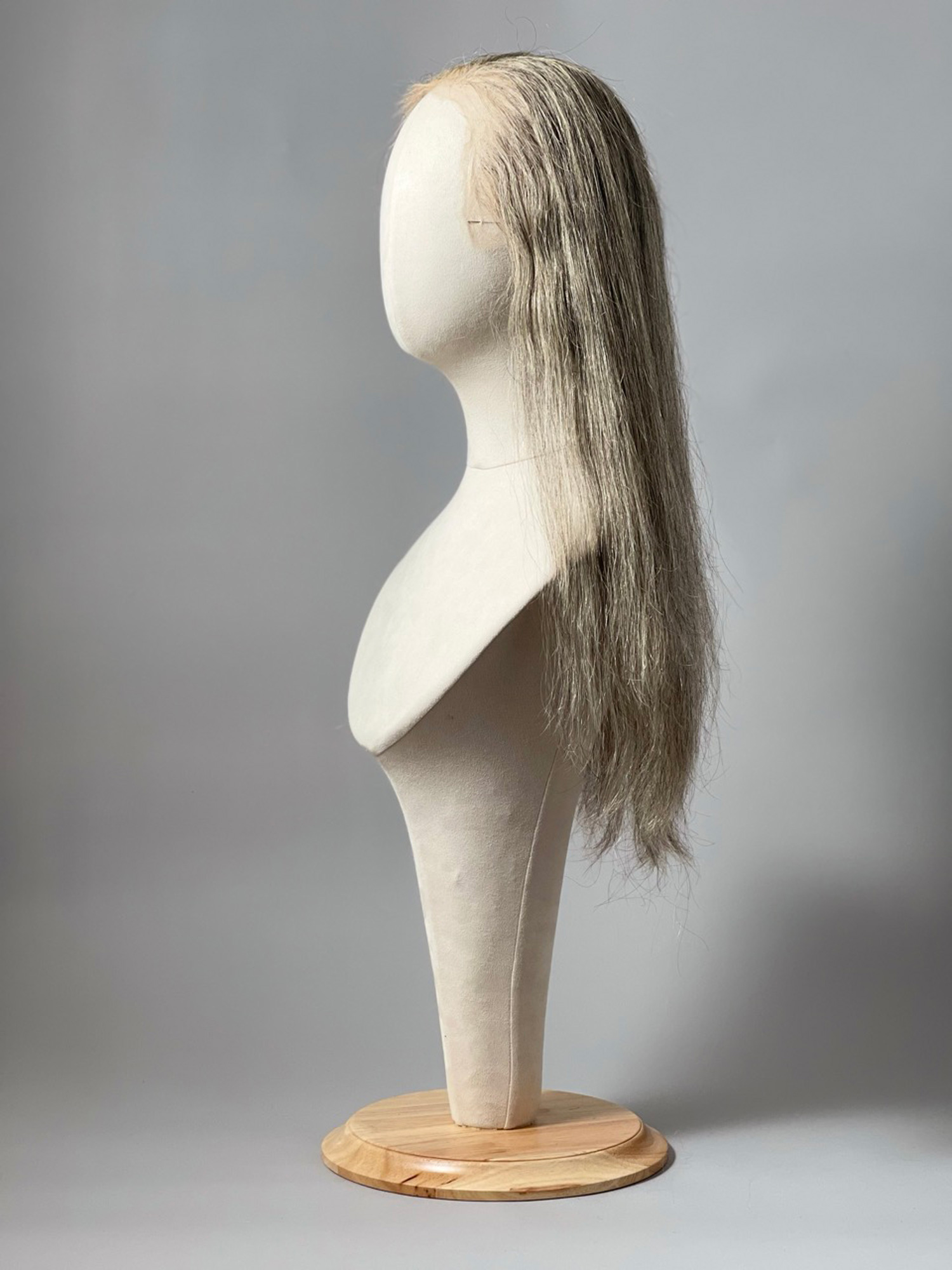 Perruque longue poivre et sel