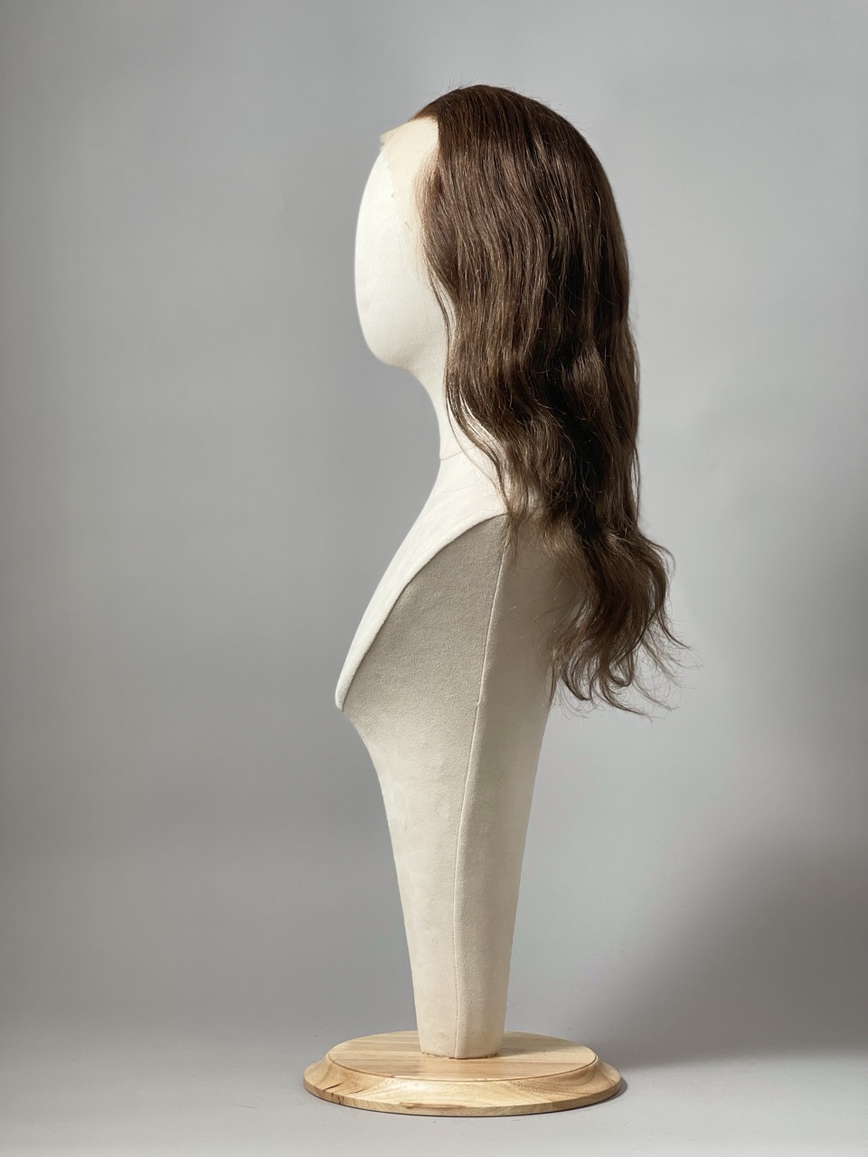 Cap design: Perruque totalement implantée, composée d un tulle extra fin sur la partie frontale et un tulle fin sur l arrière .