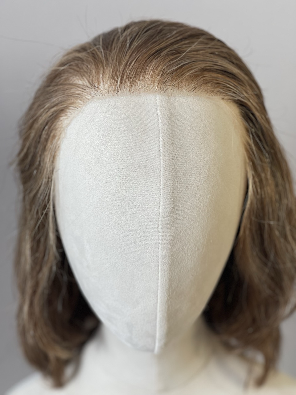 Perruque blond légèrement cendré avec des nuances de blonds moyen et blond clair